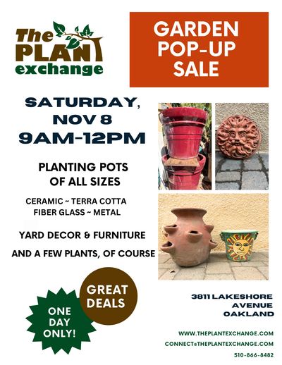 The Plant Exchange is hosting our last garden pop-up sale of 2025 on Saturday, November 8 from 9am-12pm at 3811 Lakeshore Avenue in Oakland. Available items can be seen here.
